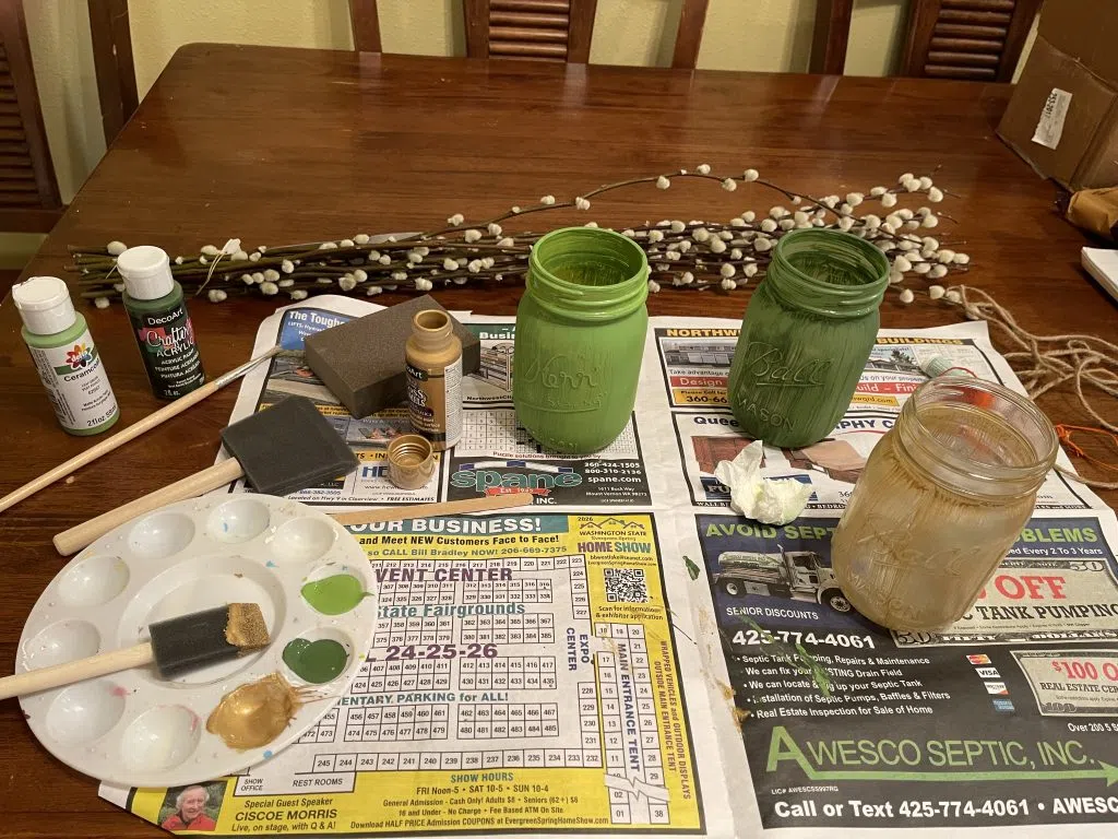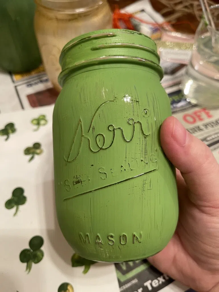Note: I did not paint the bottoms of the jars as I didn’t want any possible paint transfer onto furniture.
