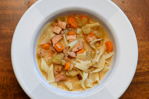 After a week off of work, it was back to “real life” for me, which meant breaking out the old mother’s helper: my slow cooker. Chicken soup always warms the soul, but we love this recipe that’s a little heartier. I made one change from the original recipe by using this instead of cream soup* (in favor of reducing processed ingredients), and instead of using raw chicken I threw in the last of the grilled chicken from last week’s tacos, which I had tossed in the freezer to use another day. Time to table: 10 minutes (to boil the noodles). Random tip: Never cook or store your noodles in your soup. Keep them separate until serving to avoid soggy noodles!!!
