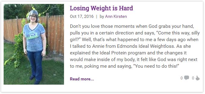 Have you been following Ann’s journey with Edmonds Ideal Weight Loss? If you haven’t, you should. Amazing things have been happening. Here are all of her posts so far so you can read her story from the beginning!
