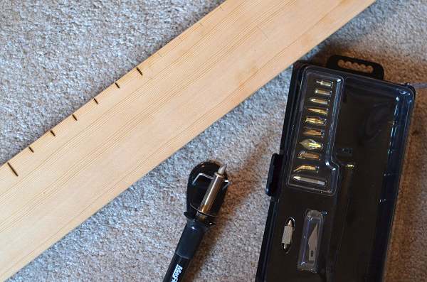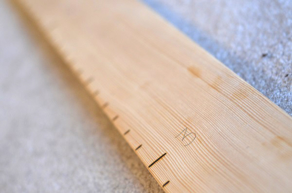 Make your marks permanent. My husband happened to come home with an inexpensive wood-burning kit from the store, but if you don’t have one (and don’t want to buy one), don’t let that stop you. Use a sharpie! You can also outsource this whole thing and just buy some vinyl decals.