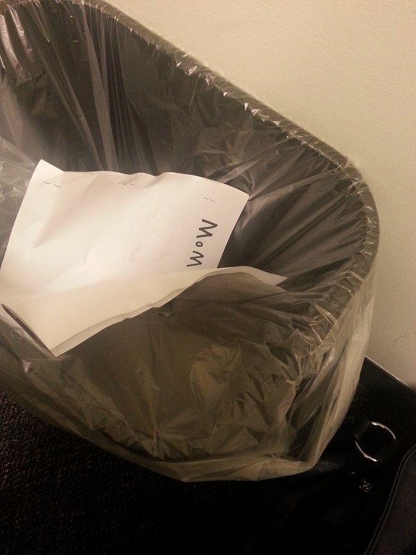 There was just one flaw with this perfect solution – on occasion, my little one would open the trash to throw something away and see his beloved creation in there. “Hey! What’s my picture doing in the garbage?” he would ask. And I would have to feign surprise. “Oh my goodness! How did that happen?!? That shouldn’t be in there!” and we’d shake off the coffee grounds and smooth it out and set it back on the countertop.