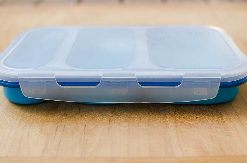 The lid is not completely leak-proof between sections, but if you’re not tipping it on its side, it’s perfectly fine to use to transport soups, yogurt, and other messier items. The reservoirs are designed well – nice and deep – so you could fit a good amount of liquid-ish food without filling it to the very top, risking spills.