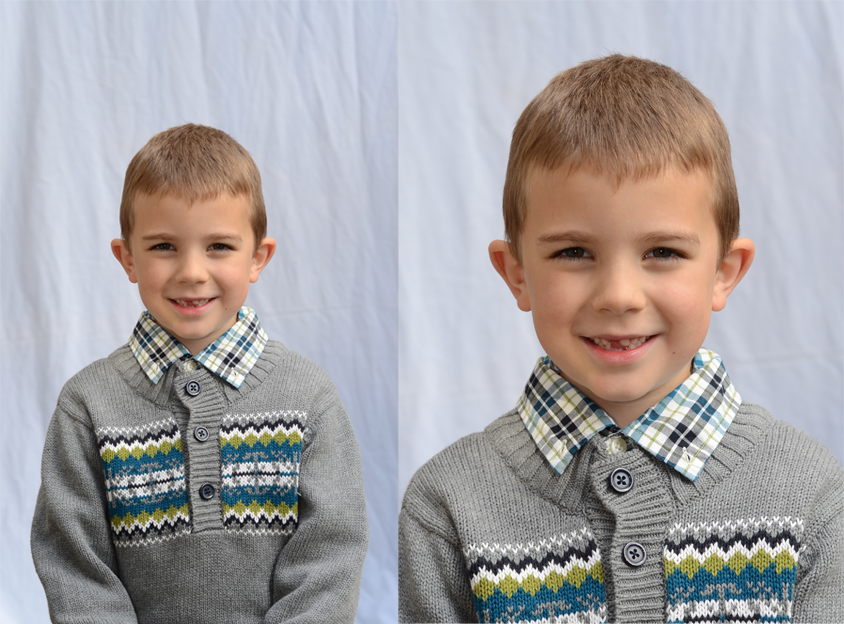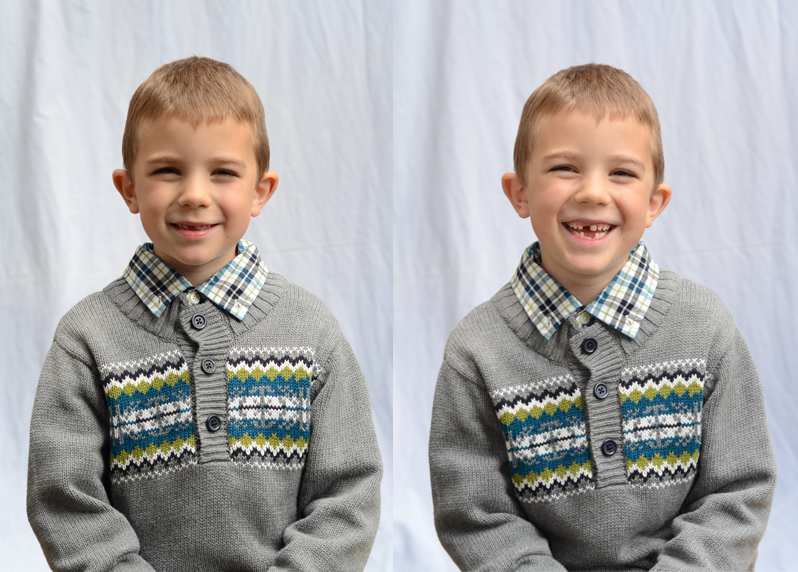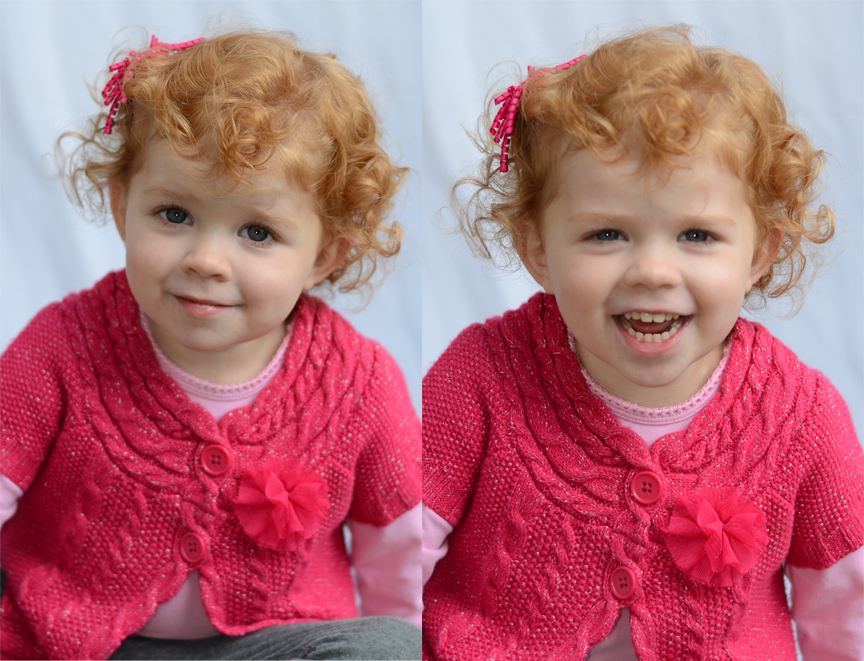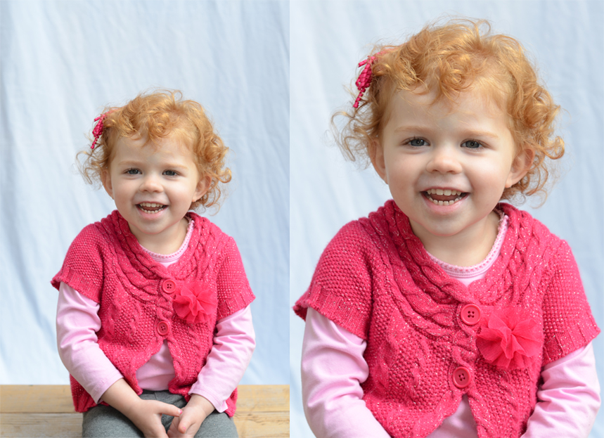 {The eyes on the left are tack-sharp, and even though I prefer the smile in the photo on the right, there’s no ignoring that the eyes aren’t in complete focus. The left photo wins.}