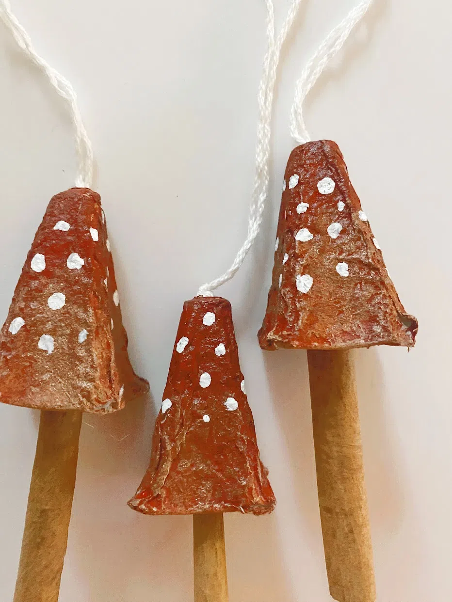Your whimsical mushrooms are ready to hang on the tree, decorate a garland, or brighten a holiday table display. They also make lovely gift toppers or sweet handmade gifts—tie a few together with ribbon and add a tag for teachers, neighbors, or family.